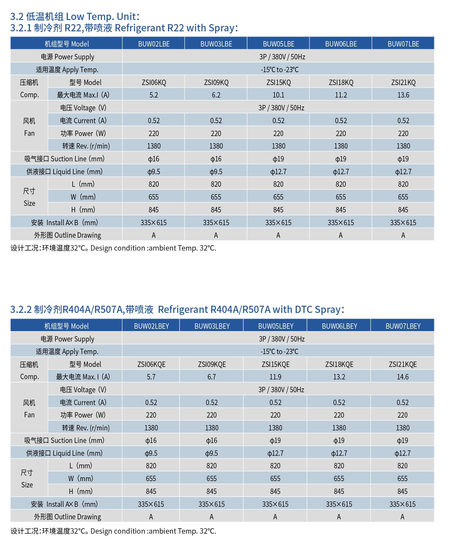 BUW-B系列 涡旋压缩机卧式箱式冷凝机组采用爱默生谷轮ZSI全封闭压缩机,功率从2HP—18HP,使用6级电机,可满足于-15℃—-23℃的需要,可广泛用于宾馆、饭店、食品、卫生、医药、农业、化工等行业。
