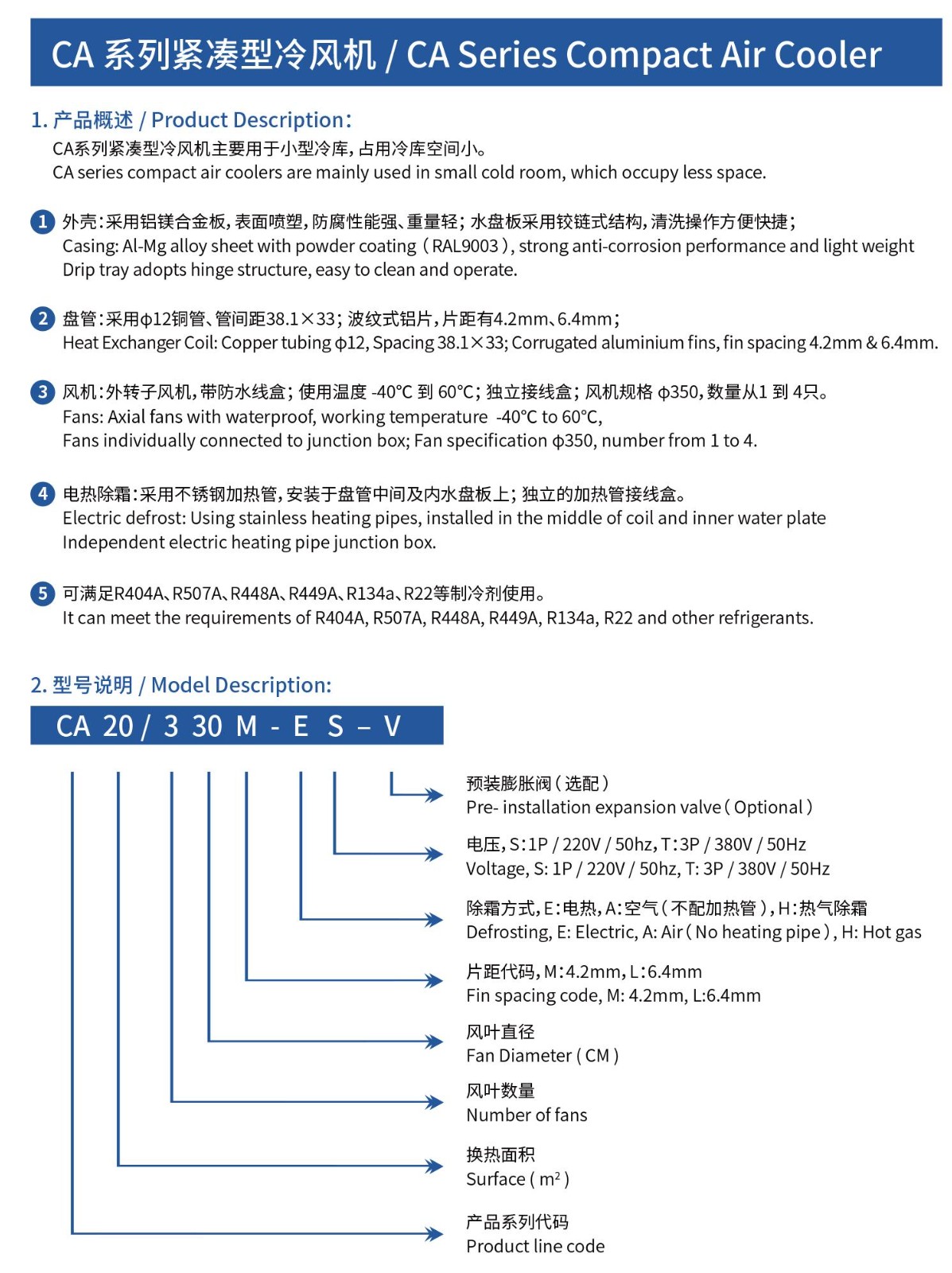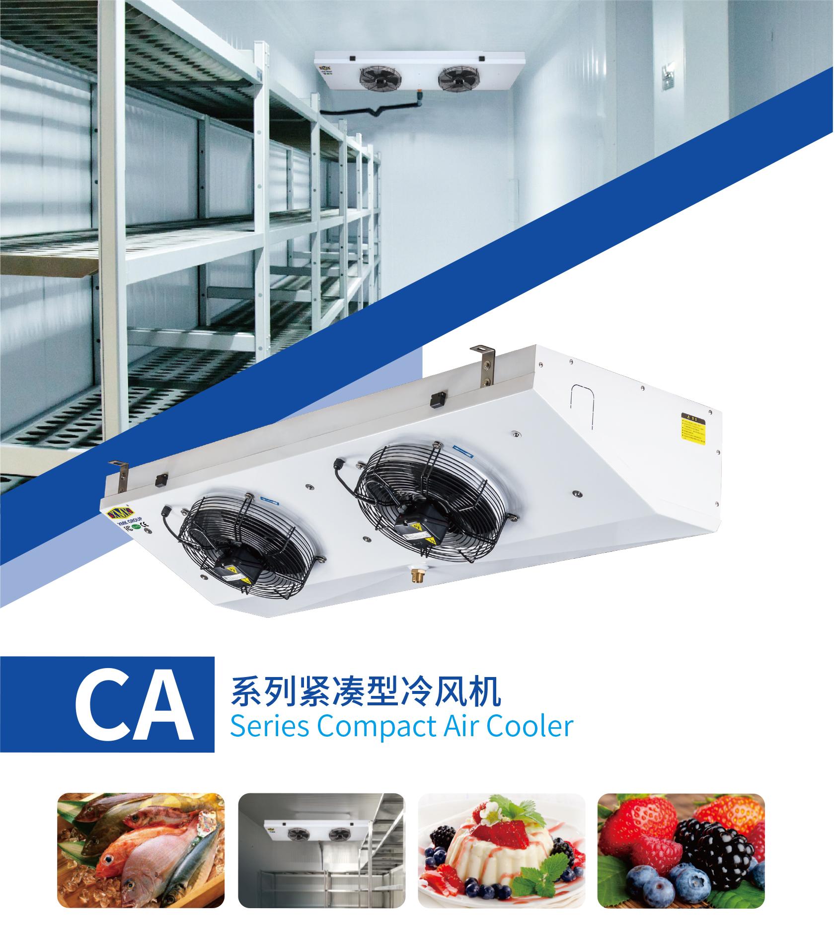 CA 角式紧凑型冷风机(单风口)是一种配套于氟利昂制冷机组使用于各种冷库的库内冷却降温设备,可广泛应用于食品的保鲜、冷藏。