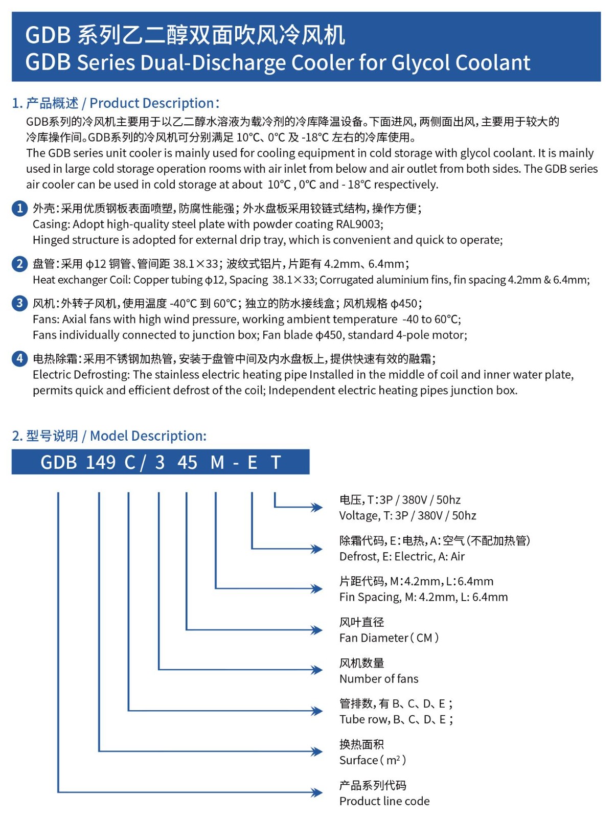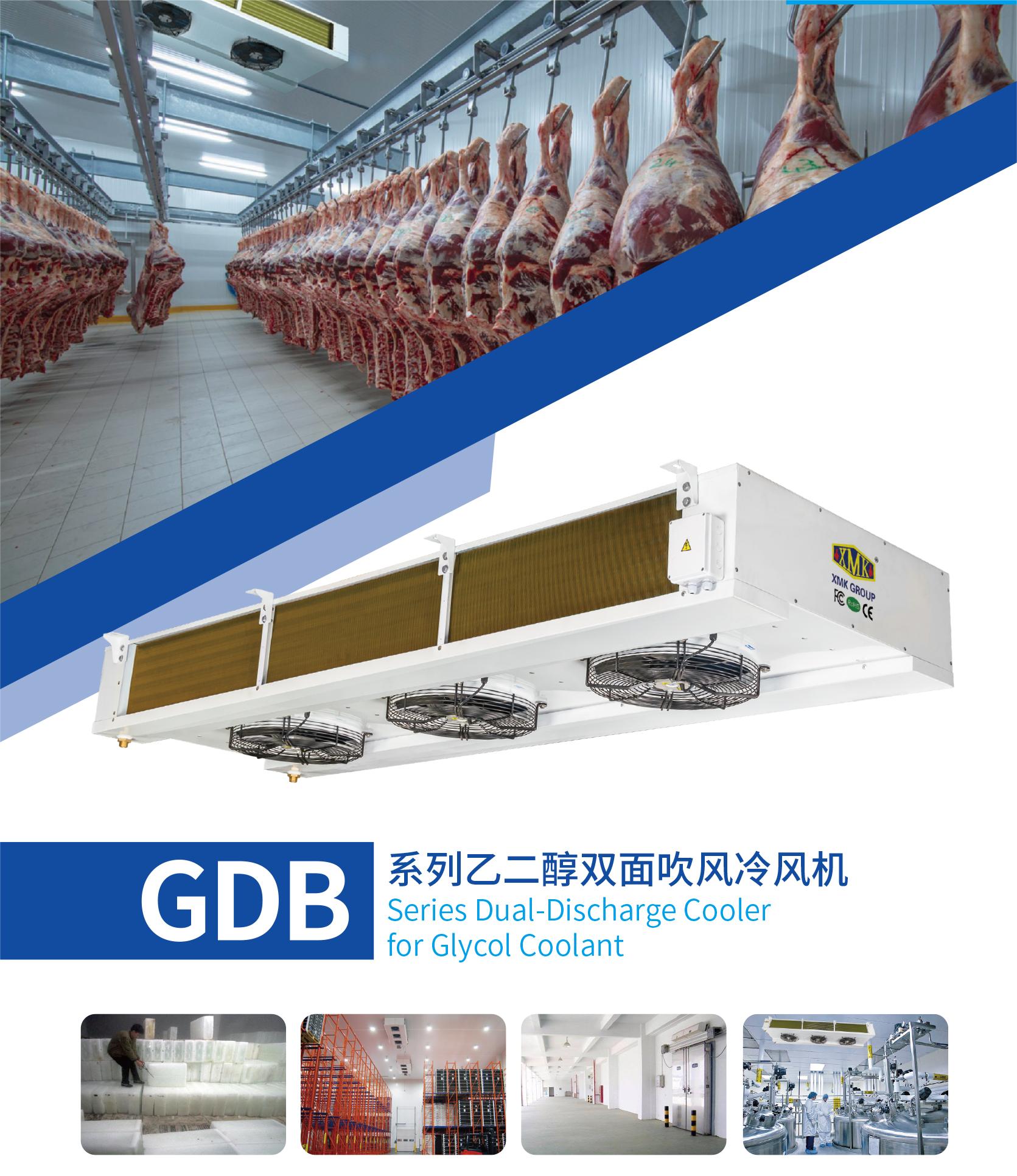 GDB系列的冷风机主要用于以乙二醇水溶液为载冷剂的冷库降温设备。下面进风,两侧面出风,主要用于较大的冷库操作间。GDB系列的冷风机可分别满足10℃、0℃及-18℃左右的冷库使用。