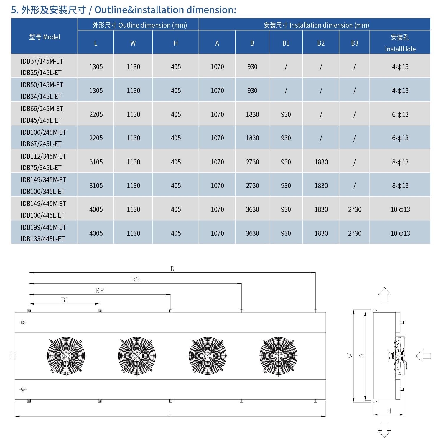 IDB系列工业型双面侧吹风型冷风机主要用于中大型冷库操作间。