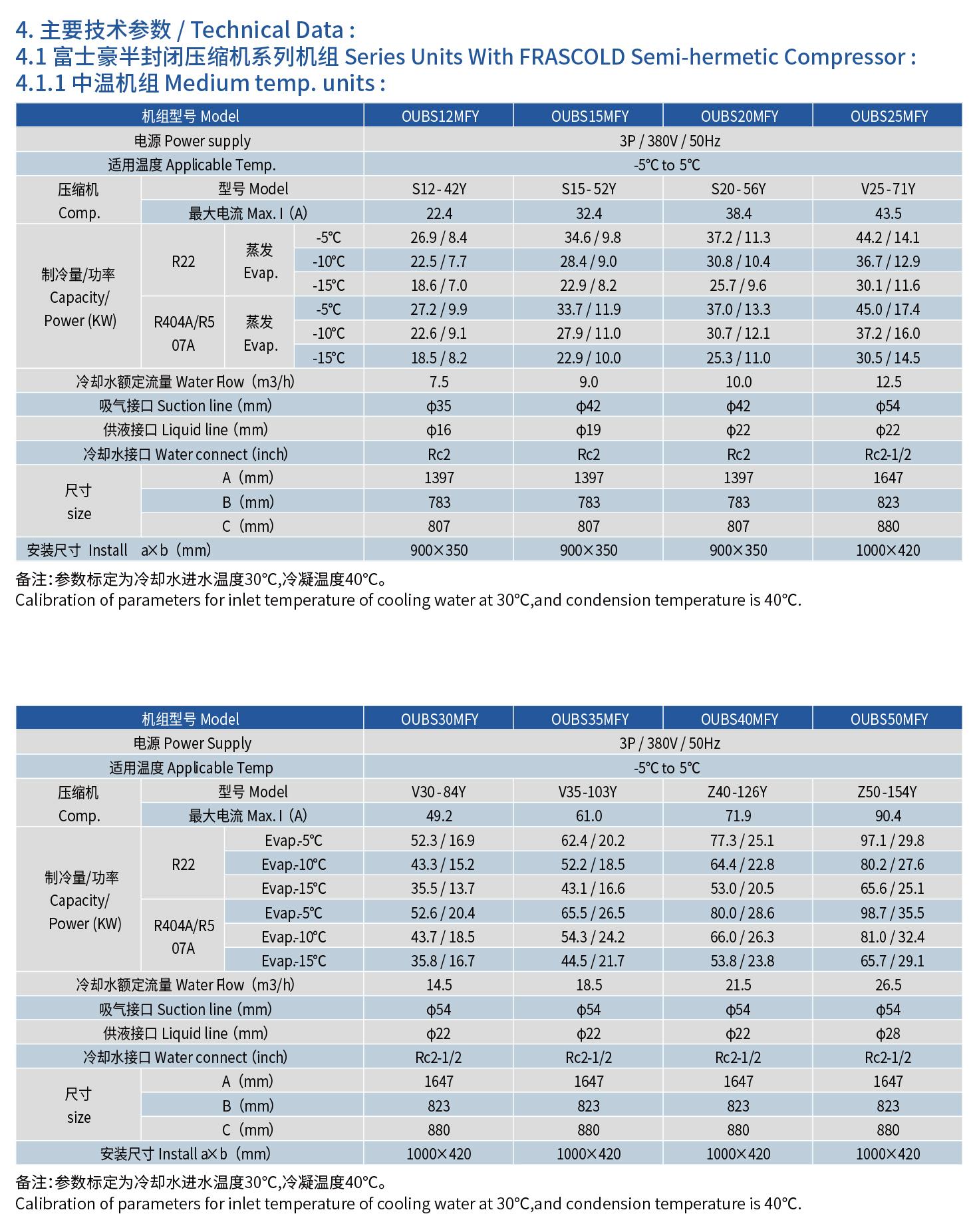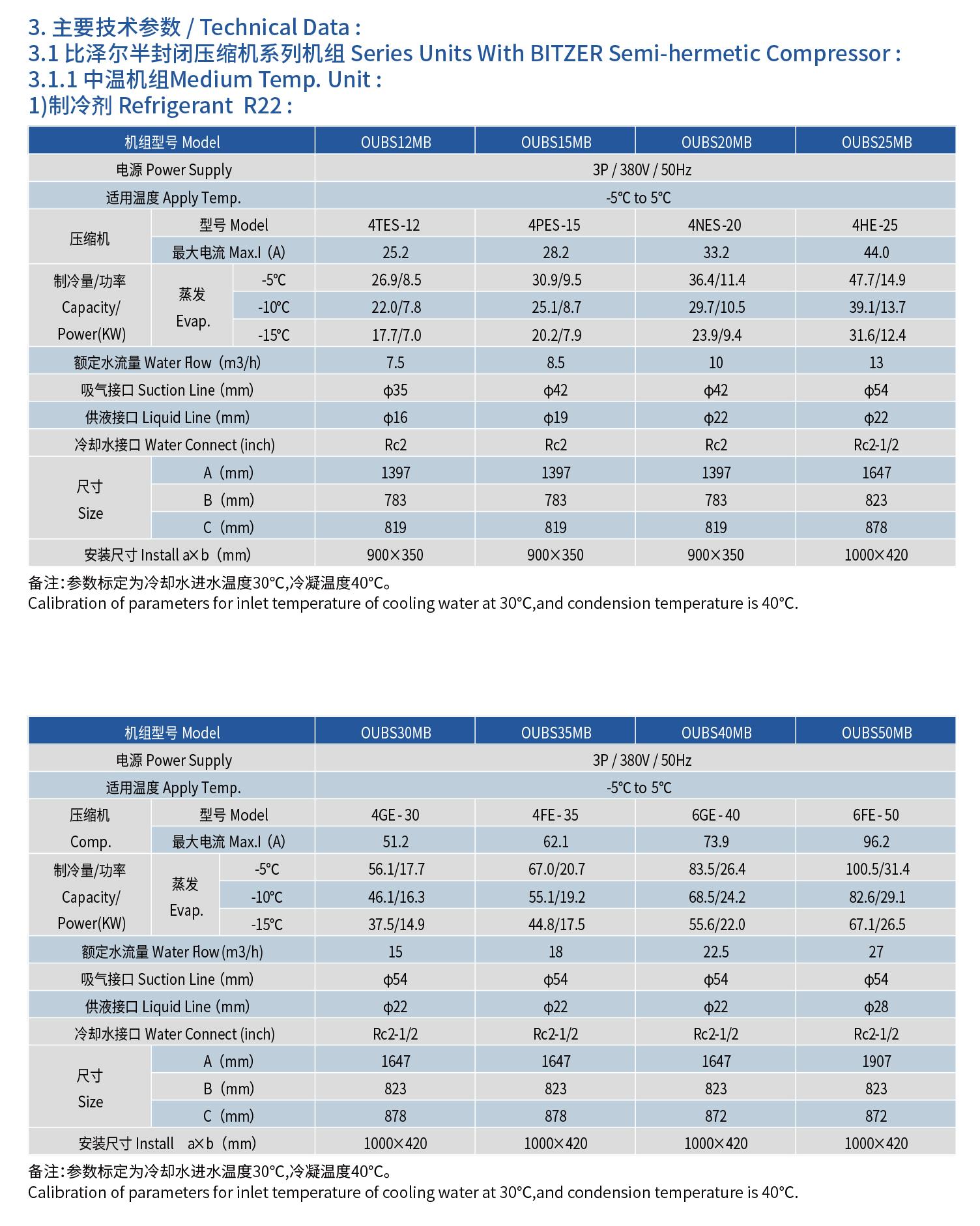 OUBS 系列半封闭压缩机水冷冷凝机组