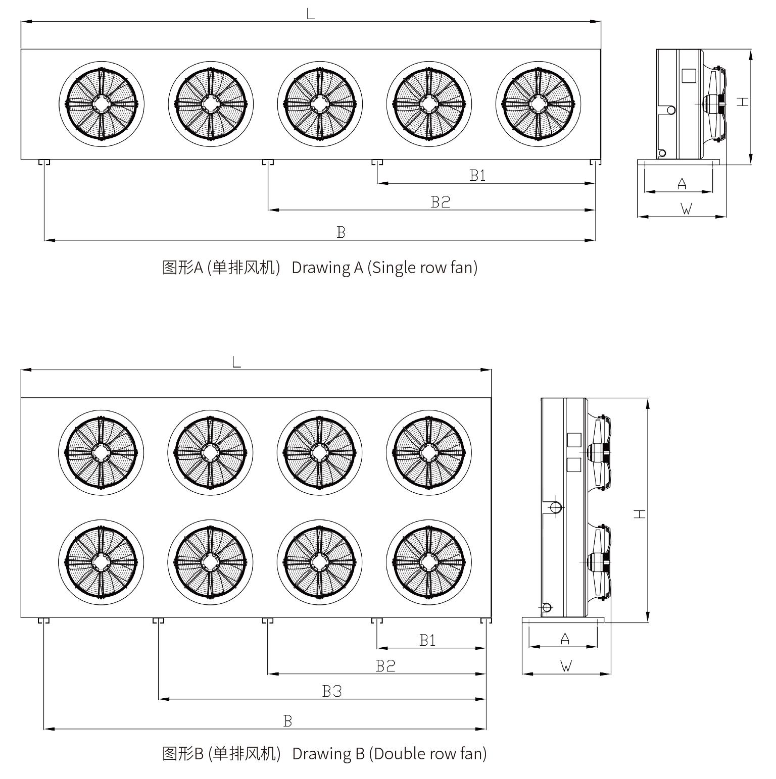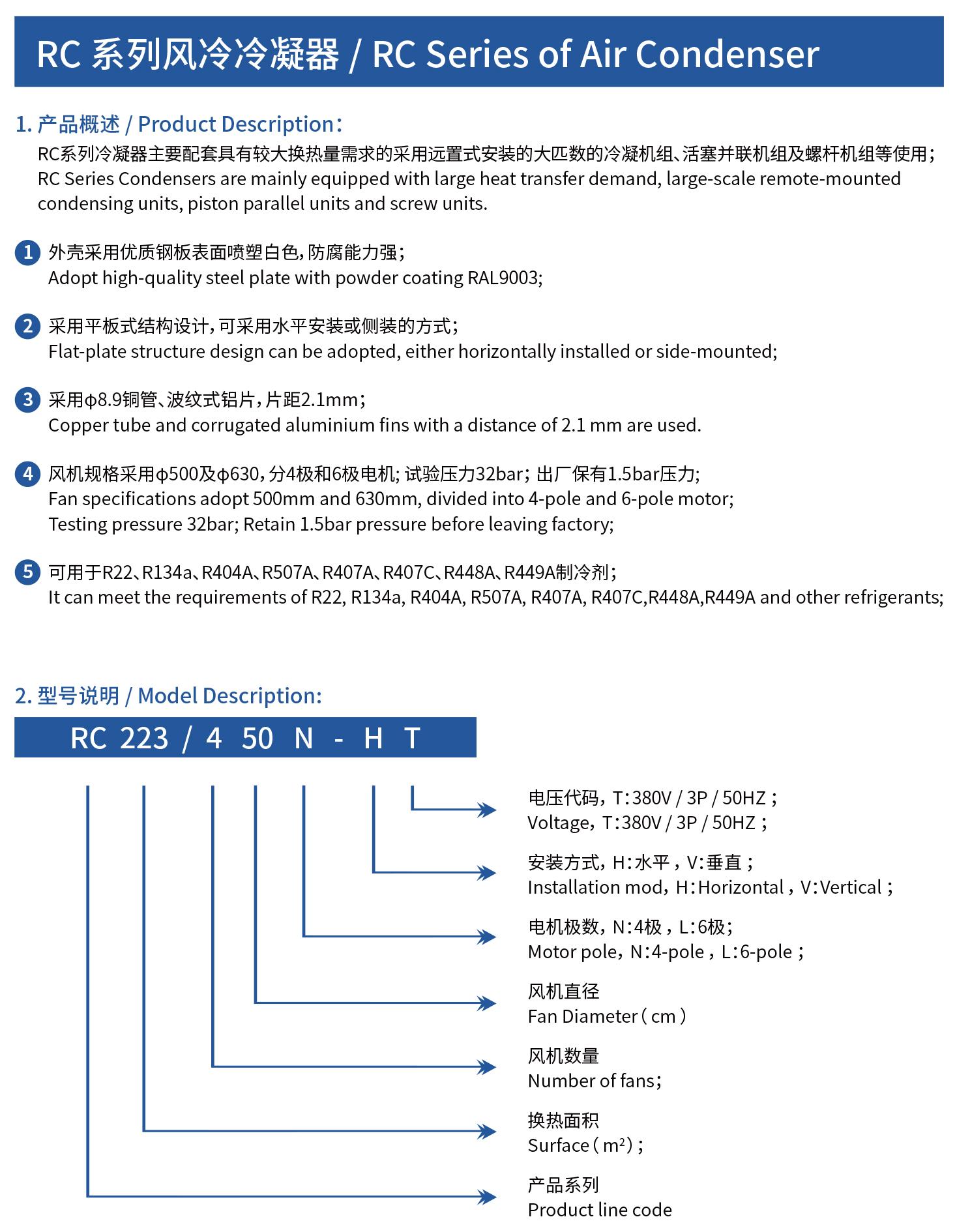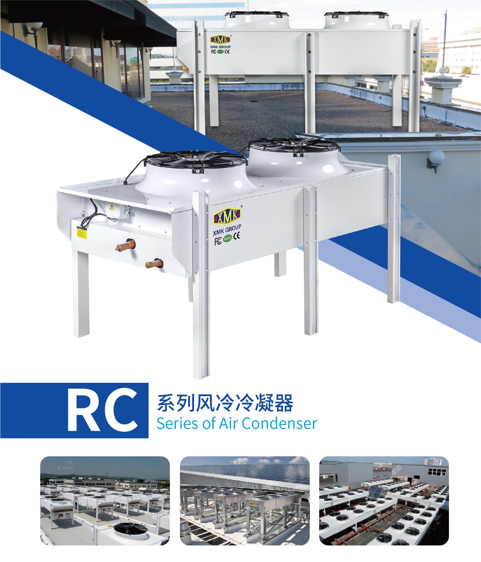 RC系列冷凝器主要配套具有较大换热量需求的采用远置式安装的大匹数的冷凝机组、活塞并联机组及螺杆机组等使用