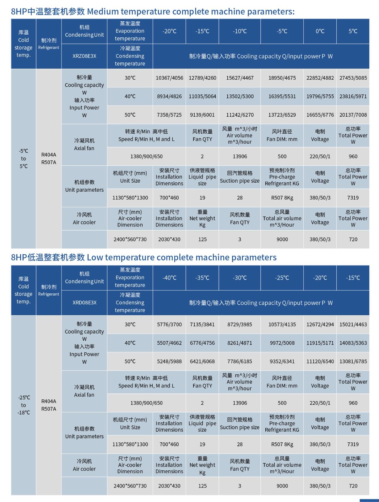 以比泽尔压缩机为主机,功率从2HP—50HP,半封闭风冷冷凝机组广泛应用于保鲜及冷藏等制冷设备中。